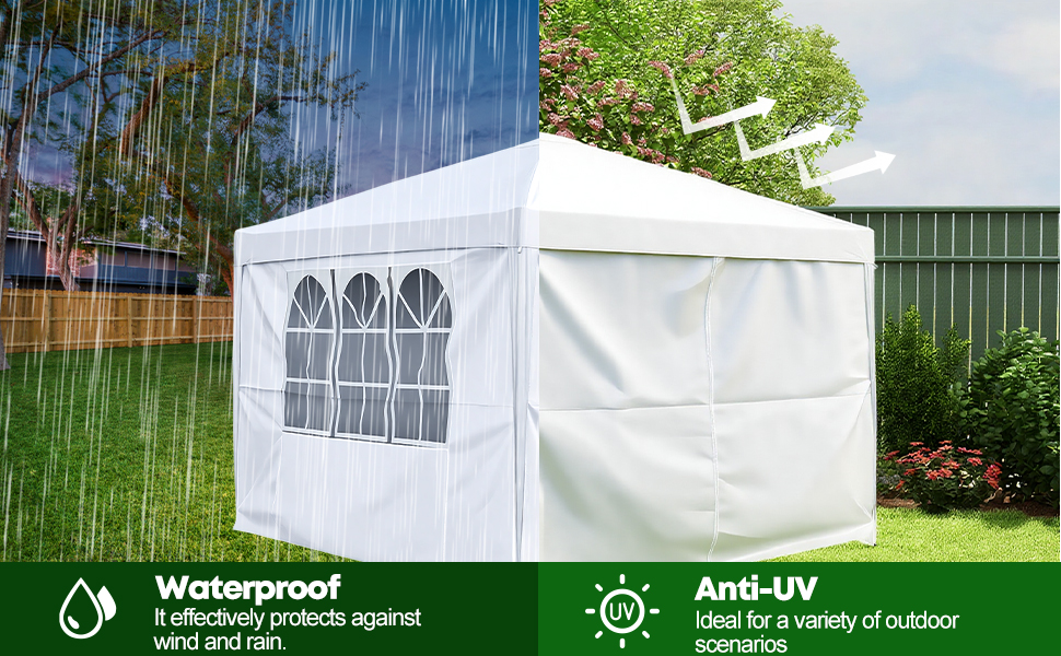 - COMPLETE SIDEWALL SYSTEM: Includes 4 removable sidewalls with elegant arched windows for ventilation and natural light, allowing flexible configuration for privacy, weather protection, or open-air entertaining