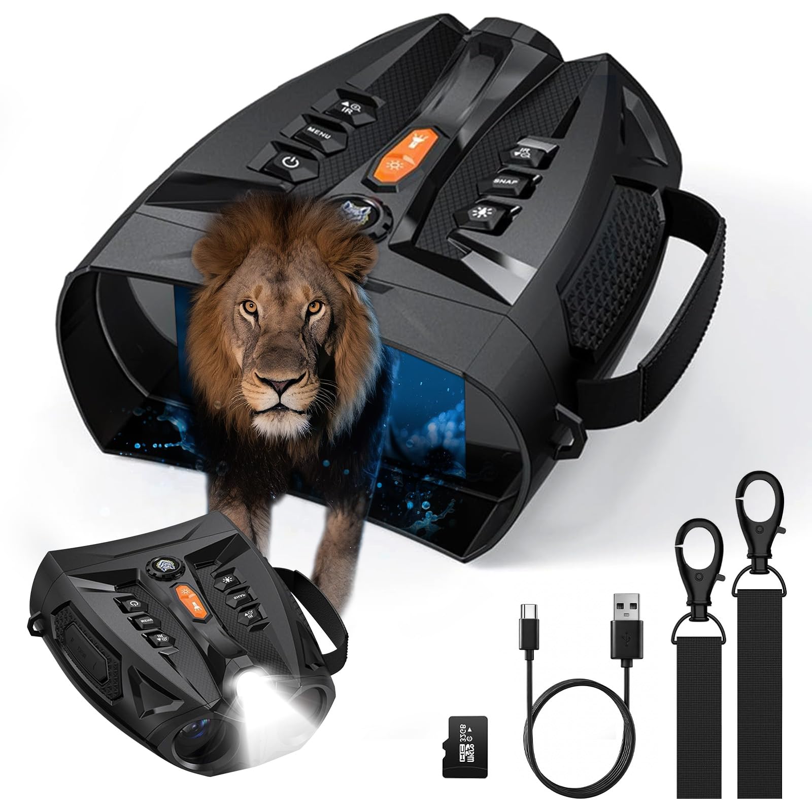 - Built-In Flashlight & Safety Design: Built-in flashlight function illuminates dark environments for safer navigation and doubles as an emergency rescue beacon. Essential for hunters, security teams, and adventurers facing unexpected wilderness hazards. This is not only a high-performance night vision goggle, but also an ideal gift for outdoor enthusiasts.