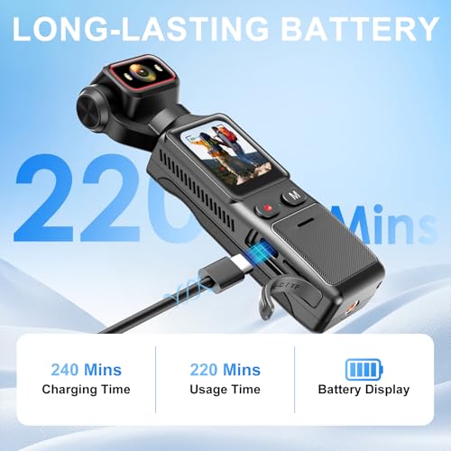 Long Battery Life & Ample Storage: Just 3 hours of charging provides up to around 220 minutes of continuous recording, with support for charging while filming. It also comes with a 64GB high-speed memory card to store plenty of 4K videos and photos. Never worry about running out of power or storage during long trips, events, or shoots—so you can focus fully on capturing every important moment.