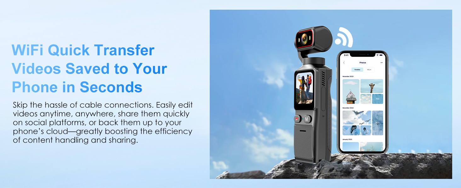 Wi-Fi Direct & Instant Sharing: With built-in Wi-Fi, the vlog camera connects quickly to your smartphone via the app, letting you transfer photos and videos with one tap. Edit on the go and share instantly to social media, so your best moments can be enjoyed and shared with friends right away.