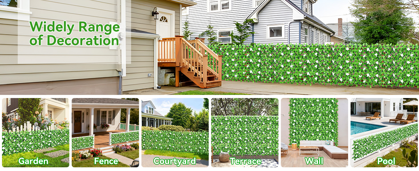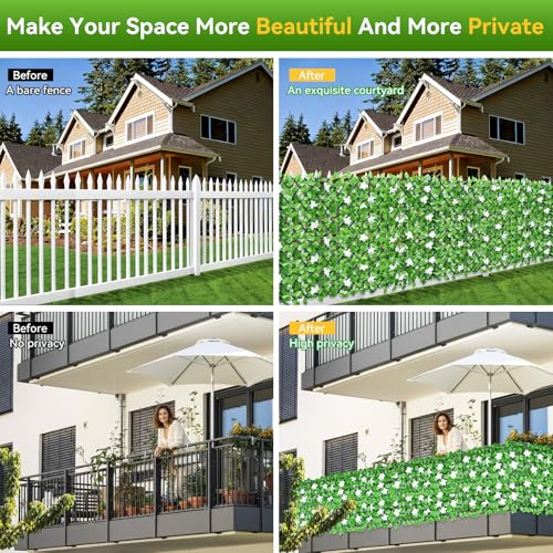 【REAL WILLOW FRAME,FAUX IVY】Artificial Fence ScreeningUsing a real willow frame, the privacy fence is complemented by faux ivy leaves and flowers for a natural and elegant look. Fence screening requires no maintenance, watering, or pruning; simply rinse with water to rejuvenate. The environmentally friendly material is durable and fade-resistant, saving you significant maintenance time and ensuring a long-lasting green experience.