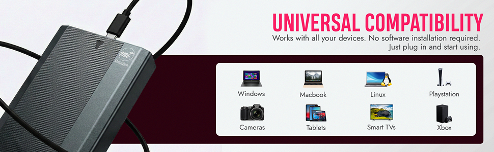 - Wide compatibility across multiple devices: This external hard drive supports PCs, Macs, laptops, and gaming consoles, including PlayStation and Xbox. It is compatible with Windows, MacOS, and Linux operating systems, offering seamless plug-and-play functionality for a variety of uses without additional software or setup.