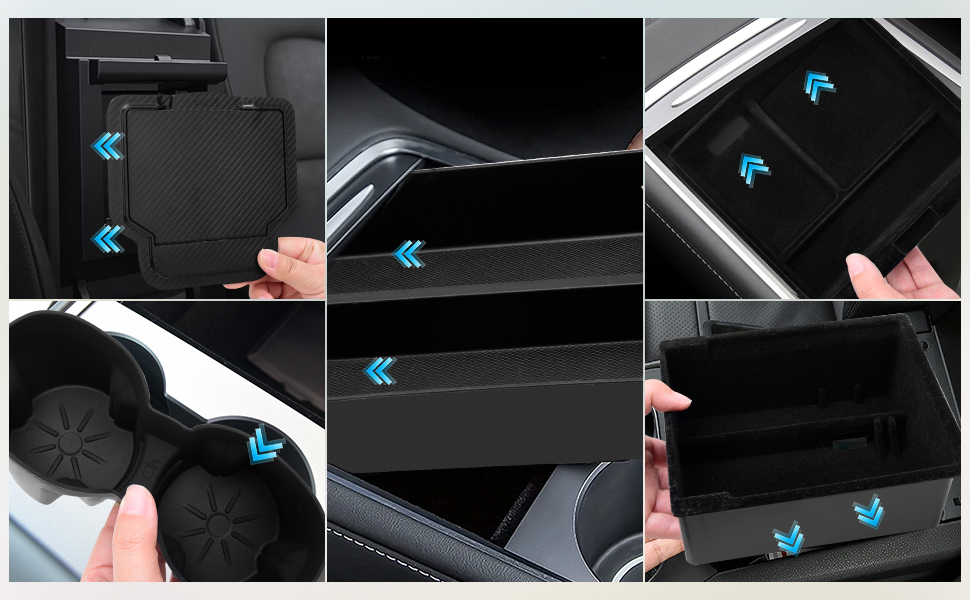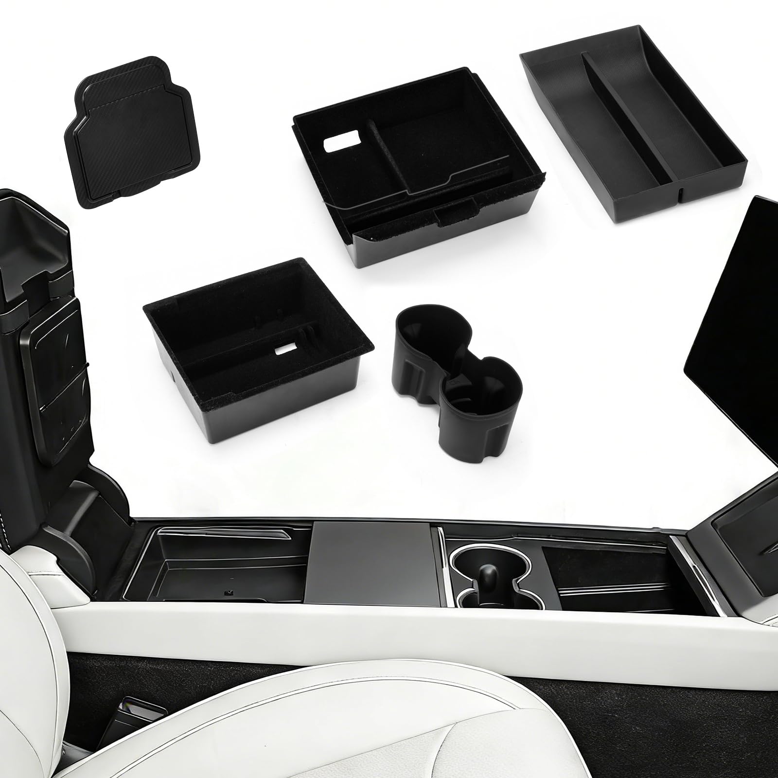 Complete 5-Piece Organisation System: Tailored exclusively for Tesla Model Y 2025 Juniper, this set includes: centre console organiser, silicone tray, hidden box, armrest storage box, and cup holder. Effortlessly organise essentials like coins, cards, sunglasses, and devices in dedicated compartments