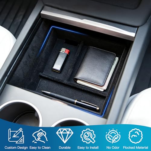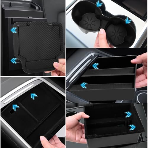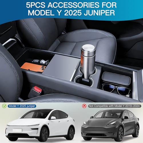 5 Piece Accessories for Tesla Model Y Juniper 2025 2026: Center Console Organiser + Silicone Tray + Hidden Box + Armrest Storage Box + Cup Holder | Flocking & Tpe Material