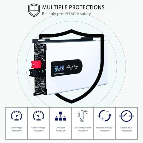 - 【Protect Your Appliances】RV power converter with soft start system as well as automatic start of the power off function, over voltage, overload, over current, under voltage , over temperature and short circuit protection. The sturdy aluminum-magnesium alloy shell provides better protection against drops and collisions. Equipped with LCD display for easy viewing of various parameters.