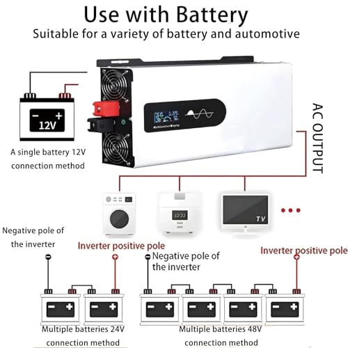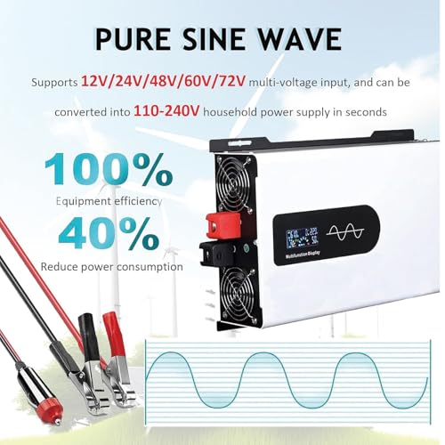 - 【Pure Sine Wave Inverter】The car inverter converter adopts pure sine wave technology, which has low interference, low noise and large load capacity, it is a voltage converter that converts 12V / 24V / 48V DC into 110V/120V/220V/230V/240V AC.