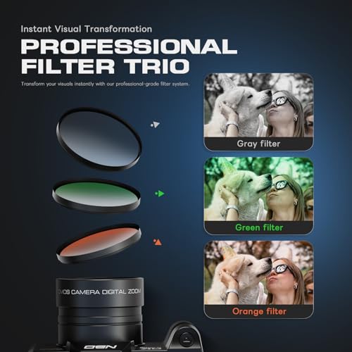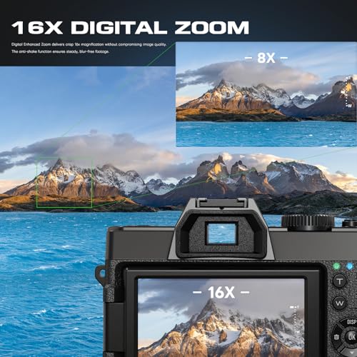 【16X Digital Zoom & Advanced Anti-Shake Cameras for Photography】Bring distant subjects closer with 16X digital zoom. Coupled with advanced anti-shake technology, it ensures your zoomed-in photos and videos remain stable and clear, allowing you to capture details from afar.