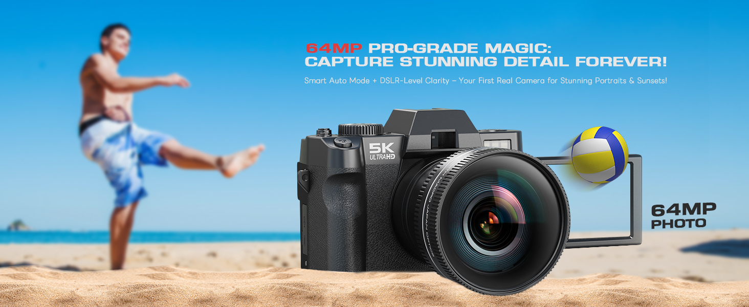 【64MP Digital Camera with High-Resolution Photos】Capture stunning clarity with the 64MP high-resolution photo mode, perfect for cropping and retaining detail. Perfect for your YouTube vlogs, travel documentaries, or everyday moments. This is a perfect choice for entry-level users and beginners/photography enthusiast.