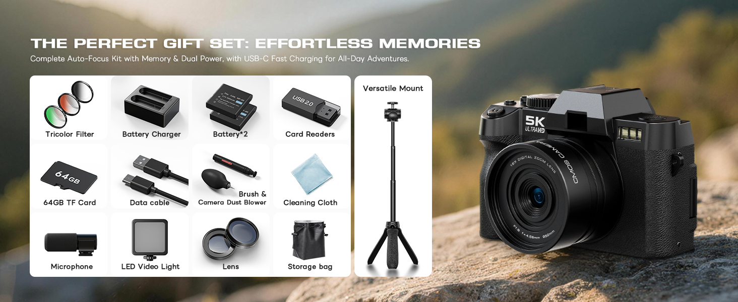 1 5K Digital Camera 2 64MP Digital Camera 1 MACRO&WIDE LENS 2 Gift Kit