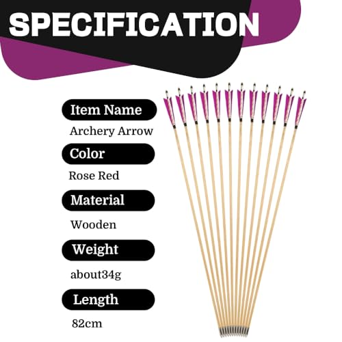 Name: Wooden Arrow Arrow Material: Indonesian white wood Arrow Nock: Slotted Arrow Overall Length: 82cm (about 32.3 inches) Arrow Shaft: OD 8mm Arrow Feather: 5inch Turkey Feather (sharp knife feather) Arrowhead Material: Stainless steel Arrowhead Length: 3.5cm Weight: About 34.8g/pc (There is an error in the weight, because of the material of the wooden arrow itself, there is no way to guarantee a uniform weight.) Package: 6/12pcs For: Recurve bow archery; Traditional long bow Shooting Hunting Note: 1.Due to shooting angle and light. There will be errors in color. 2.The above parameters are all measured manually, there will be errors. The actual item shall prevail.