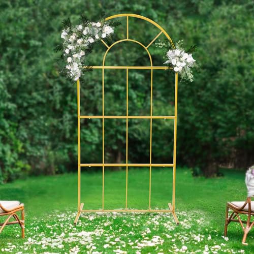 6.6×3.3FT Wedding Arch Backdrop Stand, Semicircular Arch Gold Metal Free Standing Flower Display Stand Balloon Flower Decor Party Background Garden Arbors Decoration for Birthday Party Baby Showe