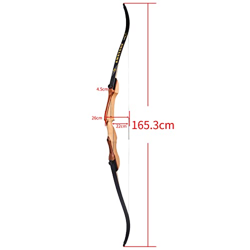 Item Name: Recurve Bow Bow length: 68″ Draw Weight:38 lbs Max Draw length:30″ 68″ Bow Brace height: 22-22.5cm Bow handle: 23.5″, 708g, Fraxinus mandshurica. Bow Limbs: 370g, fiberglass + bamboo core laminated. Bow Net Weight: 1.1kg Bow Handle size: 59.5×7.6×4.4cm Bow Limbs size: 60x4x1.6cm Bow Size: 165x26x4.5cm Bow Set: 1 x Recurve bow 6x Carbon arrows SP500 1 x Arm guard 1 x Finger tab 1 x Bowstring wax 1 x Bow sight 1 x Arrow rest 1 x Bow stringer 1 x Riser stabilizer 3 x Paper Target 2 x Copper buckle 1 x Arrow Quiver 1 x Bow Bag 1 x Bow Stand Note: 1. The real color of the item may be slightly different from the pictures shown on website caused by many factors such as brightness of your monitor and light brightness. 2. Please allow slight manual measurement deviation for the data. 3. DO NOT DRY FIRE (shoot the bow without arrow)! This will damage the bow and hurt yourself and the people around you.