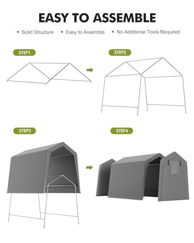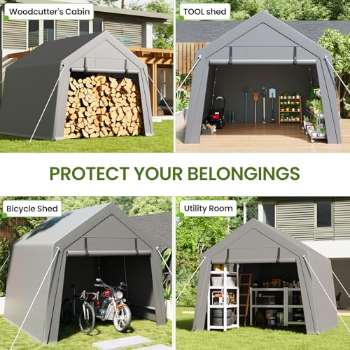 ️ Reliable All-Weather Protection:Made with a durable 220gsm PE cover, this outdoor shed offers dependable shielding from rain, snow and UV rays. Perfect for keeping motorcycles, garden tools and outdoor equipment dry and secure throughout the year.