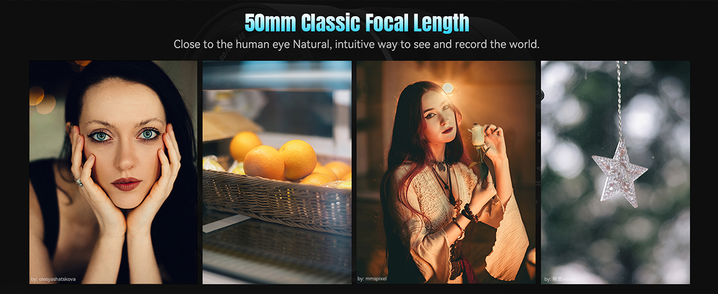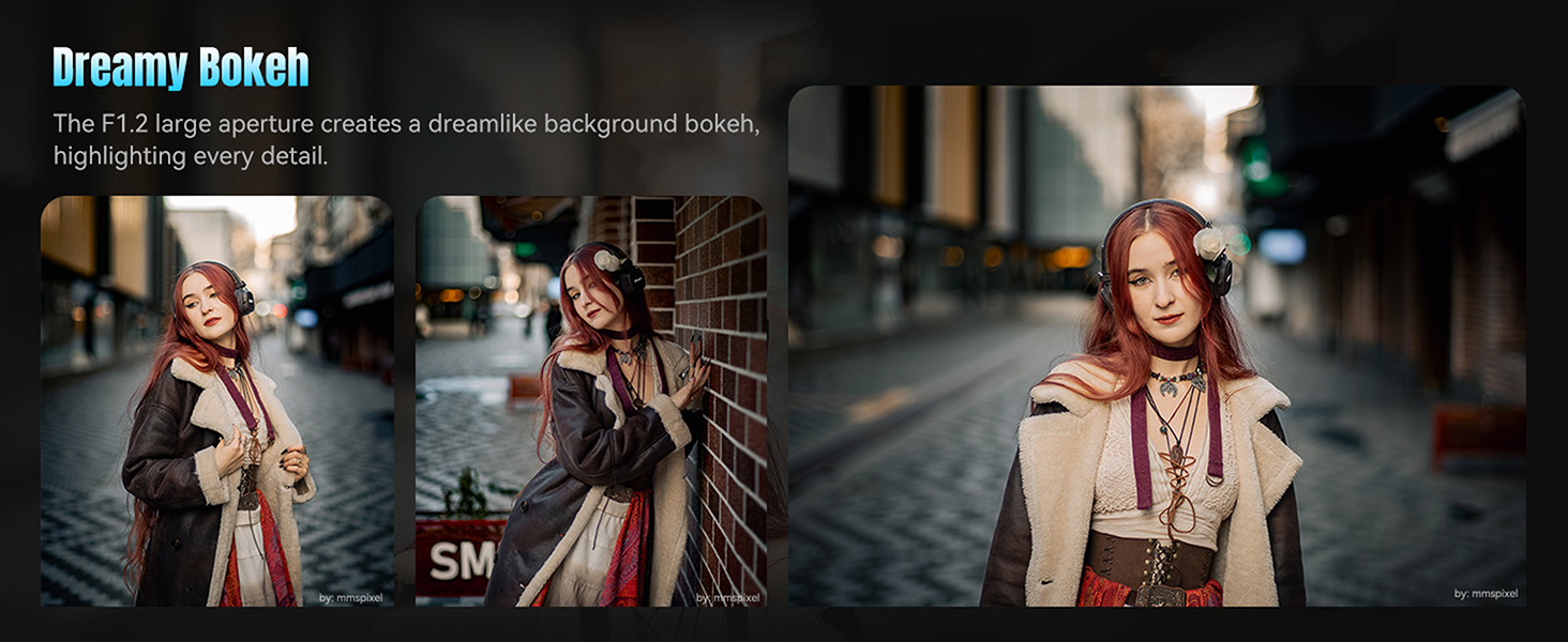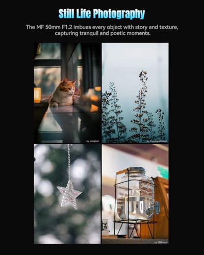 The 50mm focal length offers natural perspective, capturing the subject's expression and emotion with precision. The F1.2 large aperture emphasizes the subject, blurring the background to create a story-rich atmosphere.