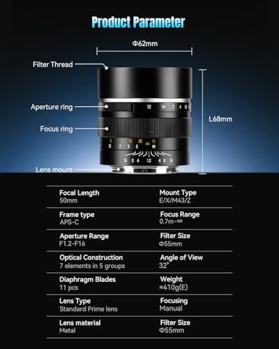 The F1.2 large aperture allows ample light, reducing noise in low-light and nighttime environments, while maintaining clear and sharp images.