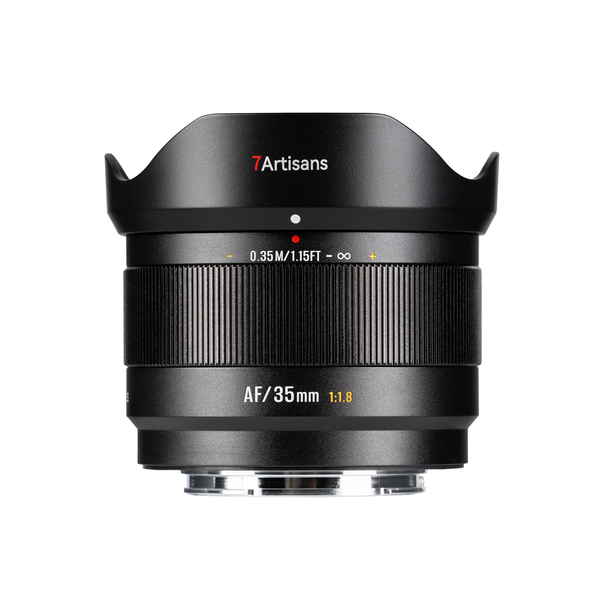 Full metal lens body delivers a premium feel, accented with signature amber-orange engravings.