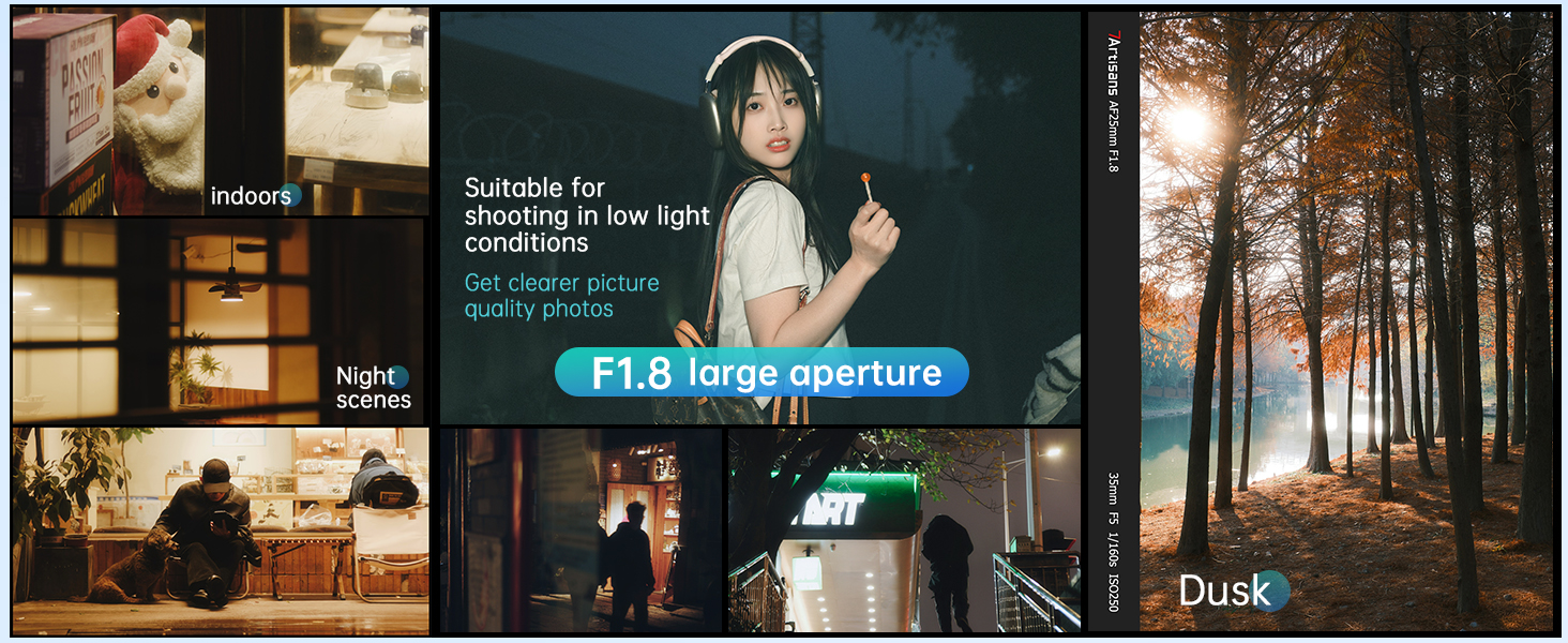 The wide F1.8 aperture creates shallow depth of field with crisp subjects and soft background blur, effectively separating your subject from busy surroundings and enhancing visual atmosphere.
