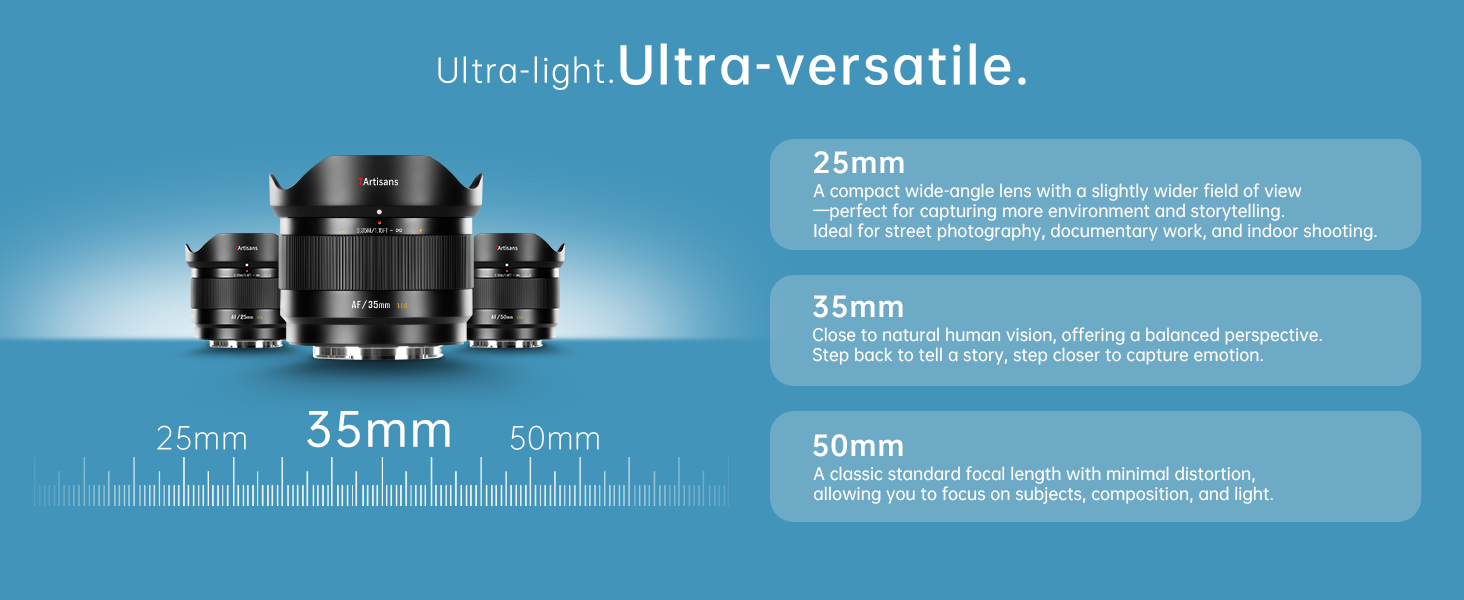 【Versatile Focal Length for Humanities】 35mm is close to human monocular vision, providing a natural and realistic perspective.7artisans 35mm F1.8 lens suitable for street photography, humanities, environmental portraits, and everyday recording, making it a versatile focal length for creative work and composition practice.
