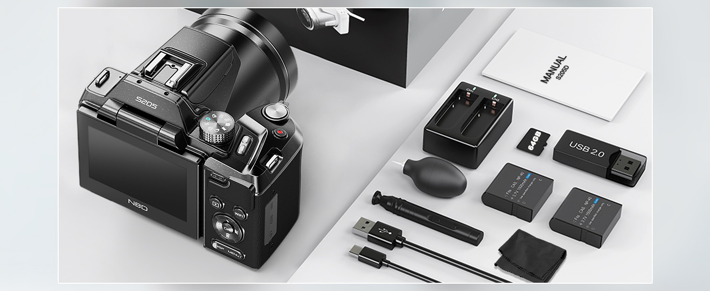 【Perfect Gift with Full Accessories & Support】This camera kit includes a 64GB TF card, two batteries, and a charger, making it a ready-to-use package for beginners. Compact and easy to carry, it's an ideal gift for photography lovers and vloggers, Backed by Monitech's 3-month free replacement or refund service, your satisfaction is always guaranteed.