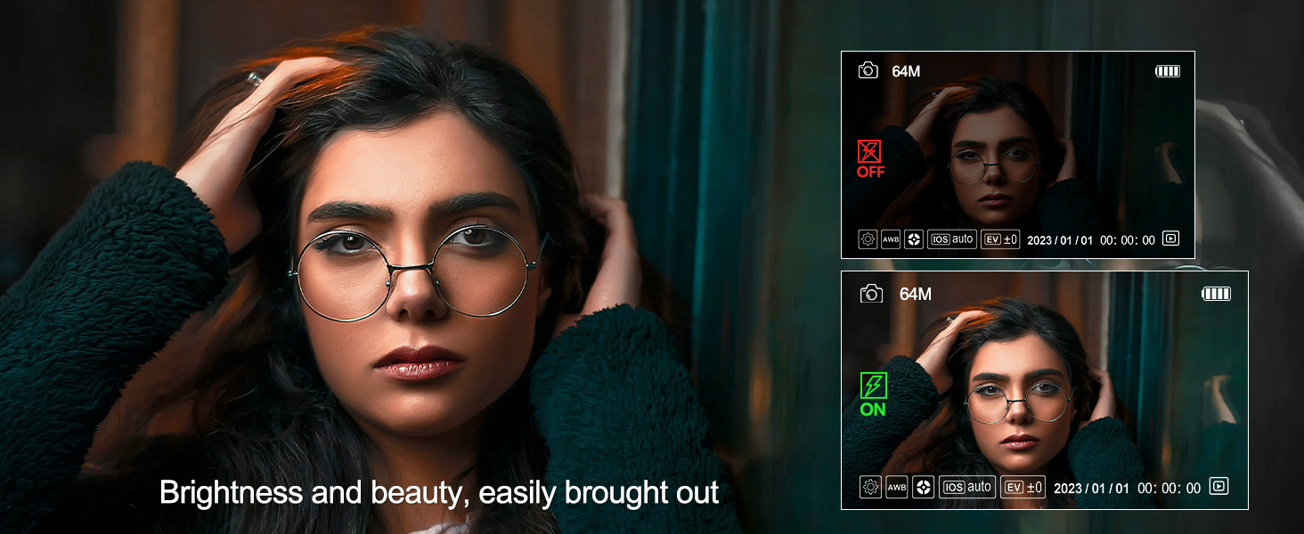【16X Zoom & Soft-Bright Flash — Be There, Even From Far Away or in Dim Light】 At your son’s school play, sitting in the back row? Zoom in gently—his smiling face fills your frame without you moving an inch. At a cozy café at night? The flash lights your friends naturally—no harsh glare, just warm faces and laughter, preserved beautifully.