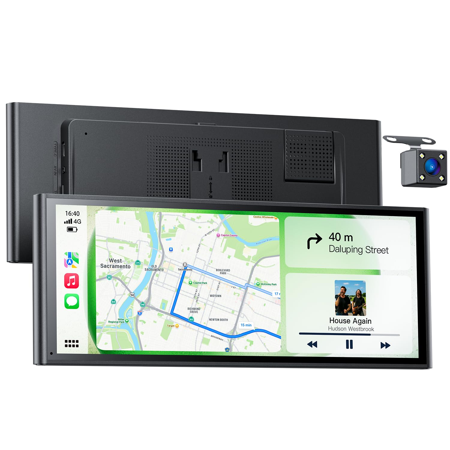 - Backup Camera for Safer Parking: Comes with a waterproof reversing camera with night vision support. The CarPlay screen with backup camera automatically displays the rear view when reversing, helping to make parking safer and easier.