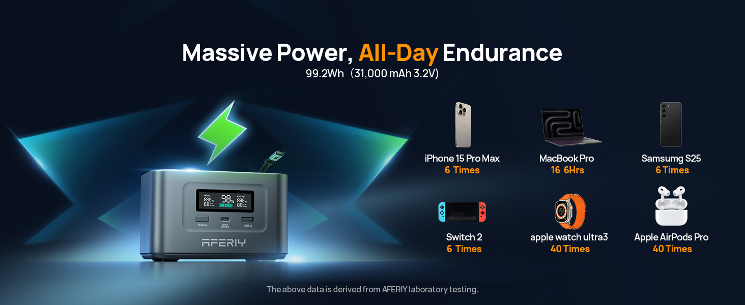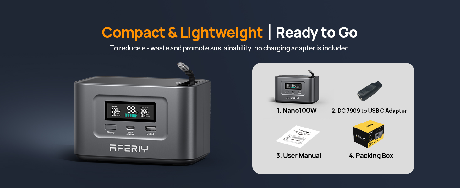 - Advanced Safety Protection: The AFERIY Nano 100 comes with built-in safeguards including short circuit, overcurrent, overload, overcharge, and overdischarge protection. These features ensure safe, stable charging for all your essential devices.