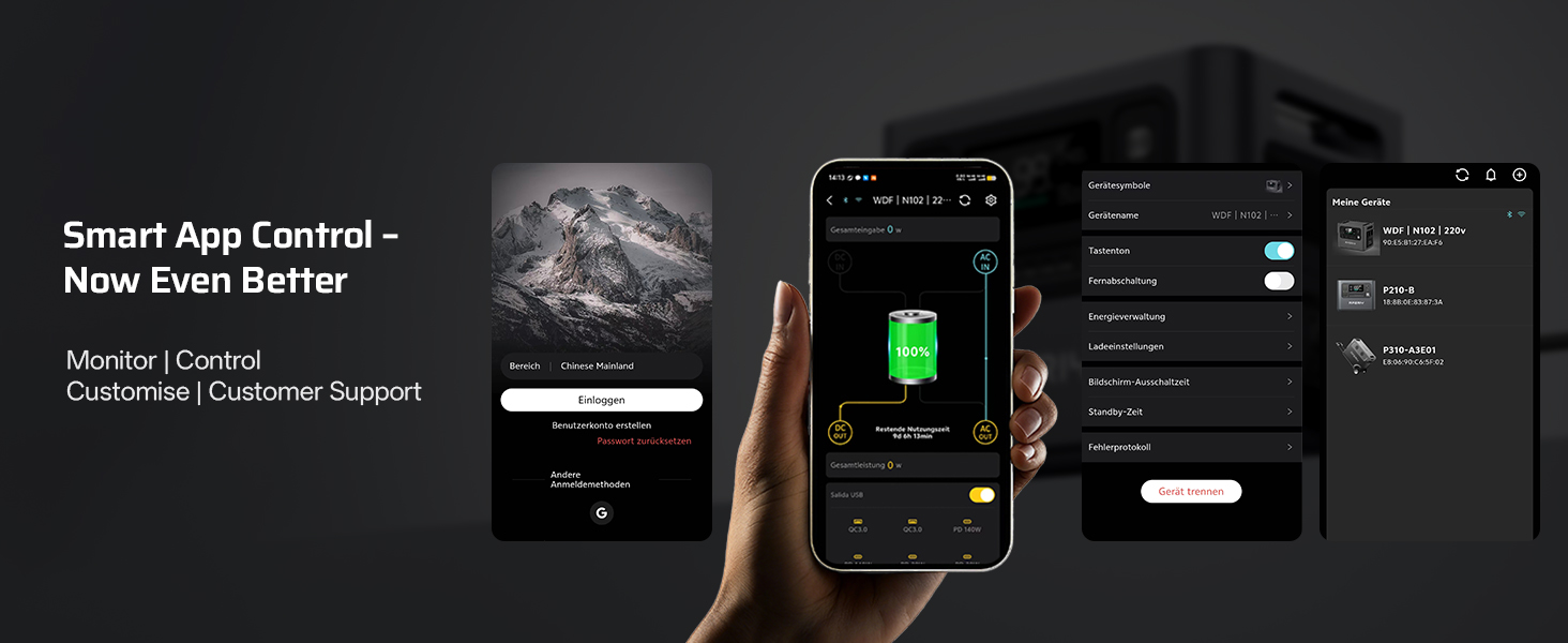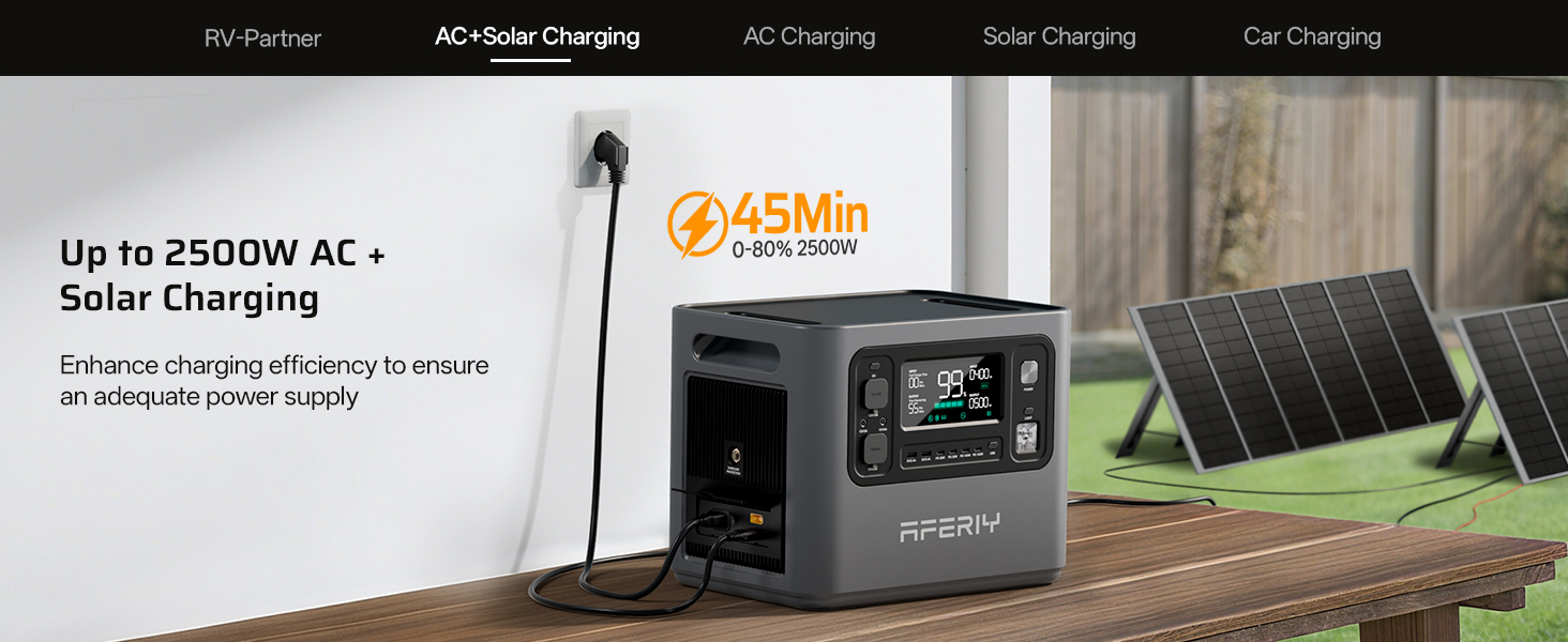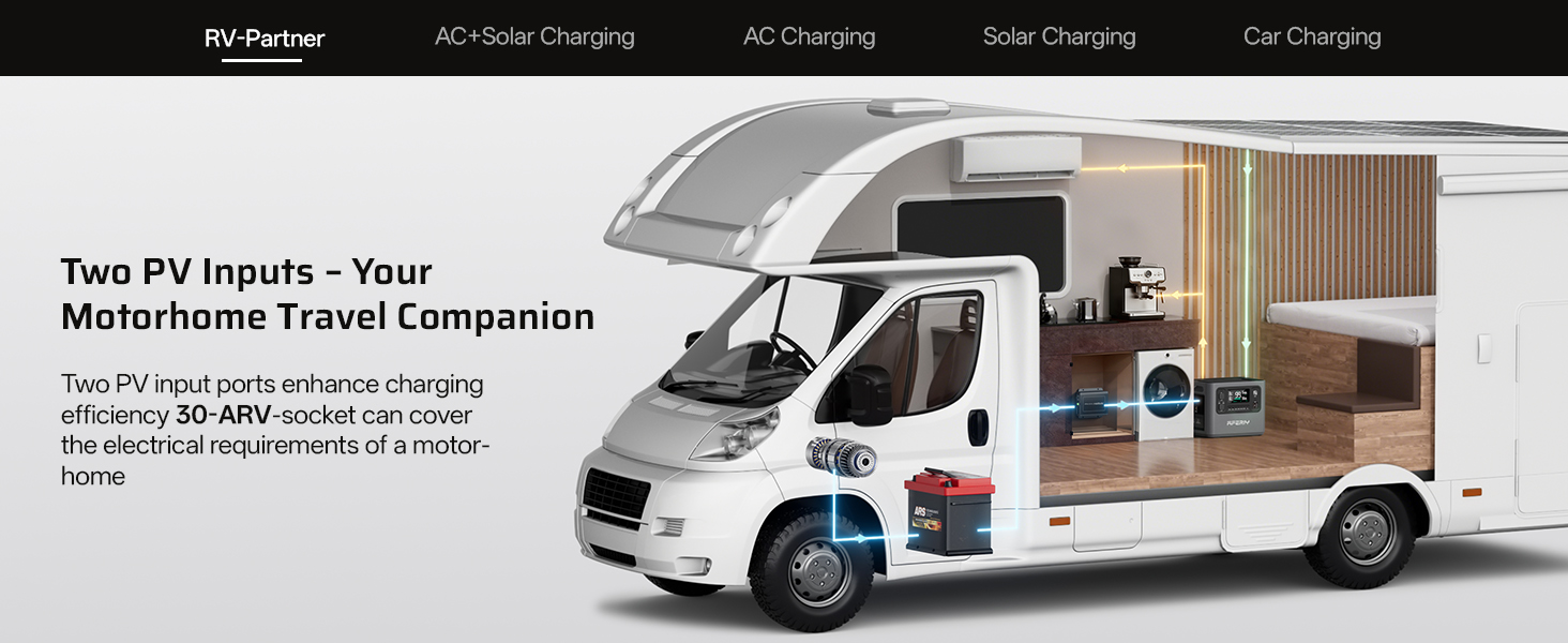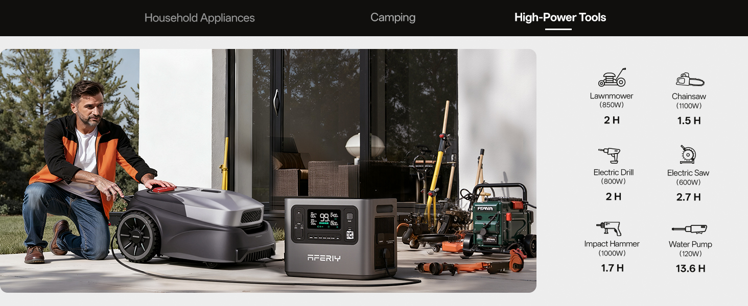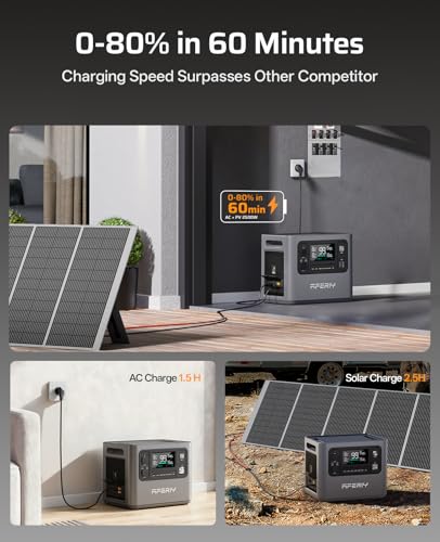 【Remote Control via Mobile App】: You can ontrol and monitor your solar power station anytime through the AFERIY mobile app. View real-time battery levels, adjust settings remotely, and stay informed about system status—perfect for use in caravans, motorhomes, temporary workspaces, or home backup scenarios.