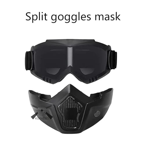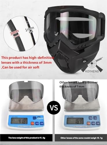 Helmet 620g. Mask: 210g. The helmet features a high-quality, durable ABS-TPU frame, which is wear-resistant and drop-resistant. The lenses are made of scratch-resistant PC material. It has a 180° panoramic HD lens and a removable visor.