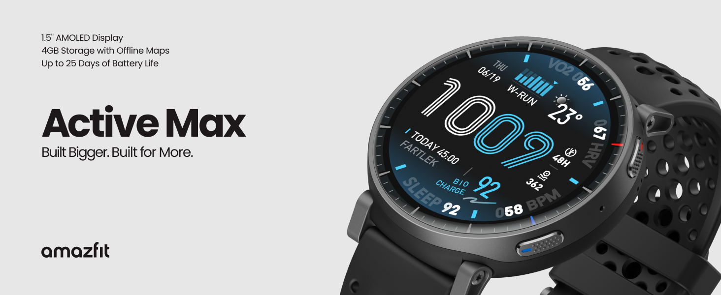 - Bigger Training, Smarter Insights: From strength sessions to long runs, the Active Max tracker adapts to how you train with 170+ workout modes and personalized Zepp Coach running plans.