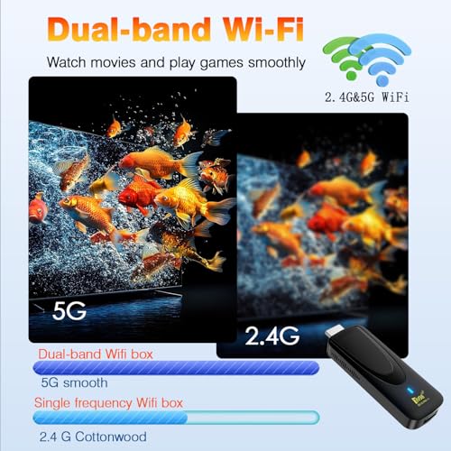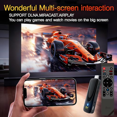 - 【Support 8K Decoding 】Streaming Stick supports 8K, and HDR10+ resolutions, rendering every detail in lifelike clarity. delivering richer colors, sharper contrasts, and an immersive feast for your eyes. Plus, enjoy the added dimension of 3D content for an even more captivating experience.You can watch a 3D movie at home with our tv box and no need go to the cinema.