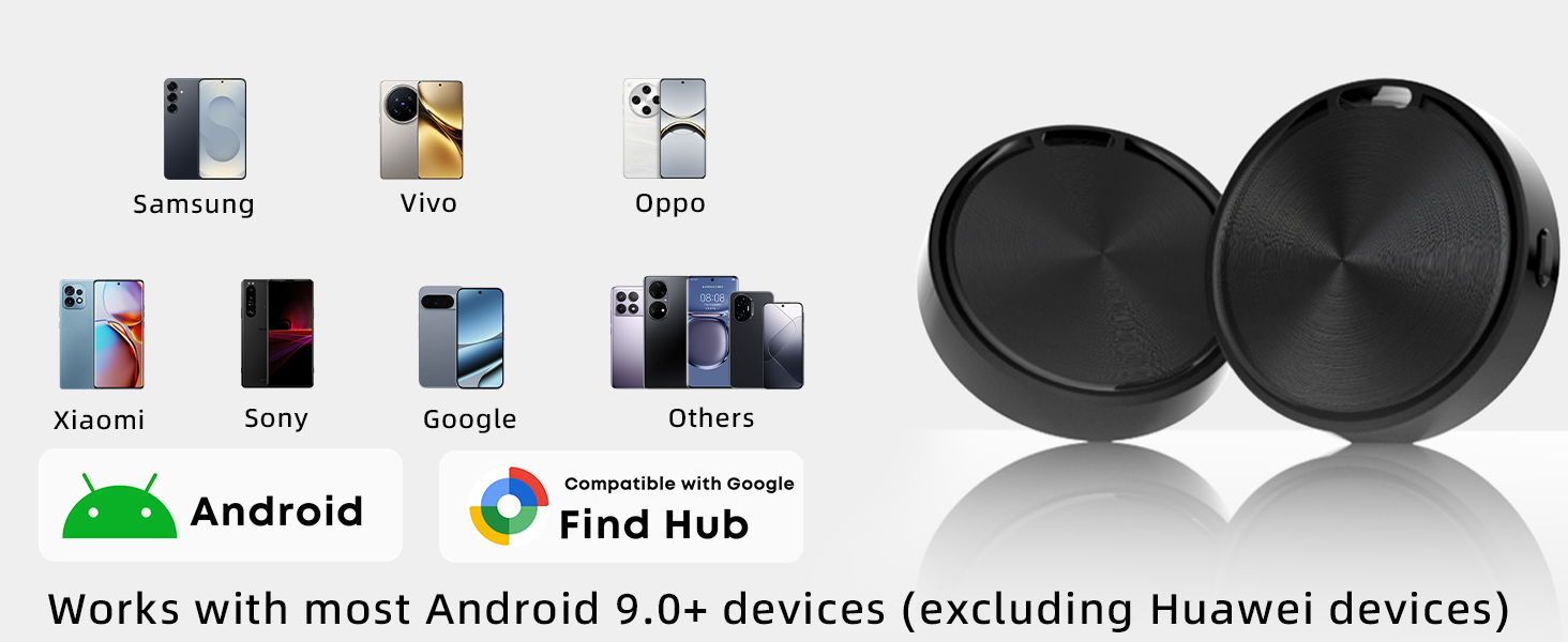 【Sound Reminder & Long-Distance Tracking】 This android tracker tag adopts advanced Bluetooth positioning technology. Within the Bluetooth connection range, you can trigger the built-in speaker via your phone to easily locate your items. When the item goes beyond Bluetooth tracking range, you can use the Google "Find Hub" app (Only Android systems) to find your item finders on the map.