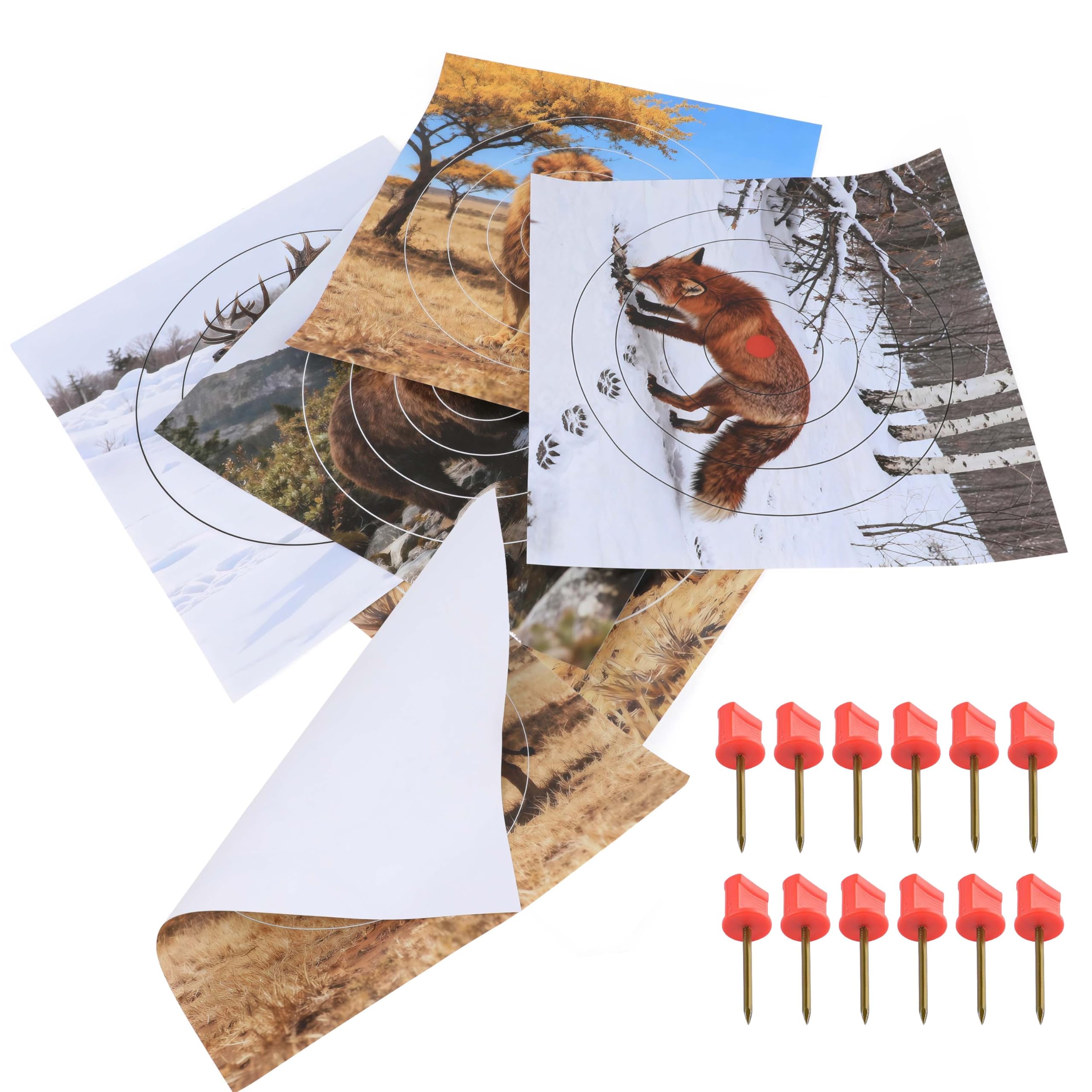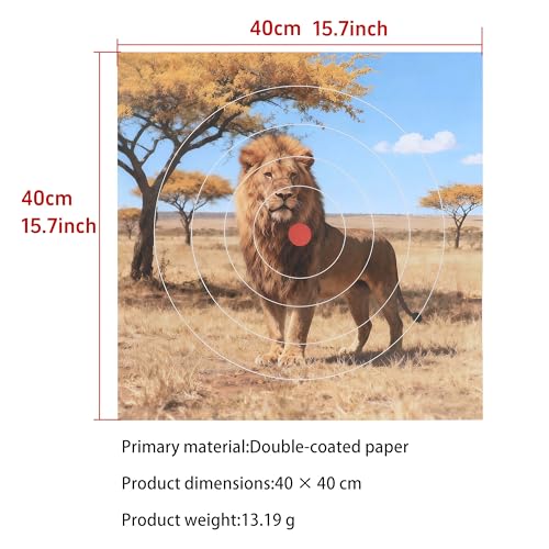 Name: Animal Pattern Target Paper Styles: Fox; Elk; Wild Boar; Brown Bear; Lion Primary material:Double-coated paper Product dimensions:40 × 40 cm Product weight:13.19 g Packaging includes: 50 sheets of target paper + 12 target pins