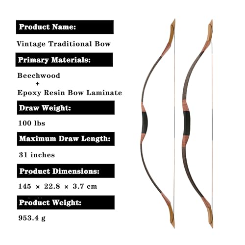 Premium Materials for Durability: Crafted with high-quality beech wood and epoxy resin limbs, this retro traditional bow offers excellent sturdiness and wear resistance, ensuring long-term use for hunting and archery activities.