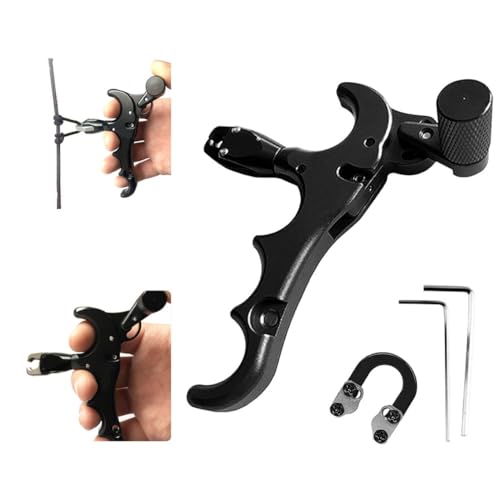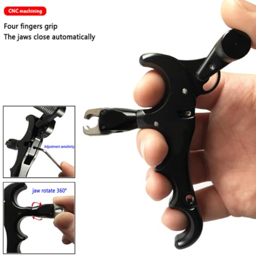 Archery Release Aids Thumb, D Loop Rope Adjustable 4 Finger, 360 Degree Rotating Bow Release