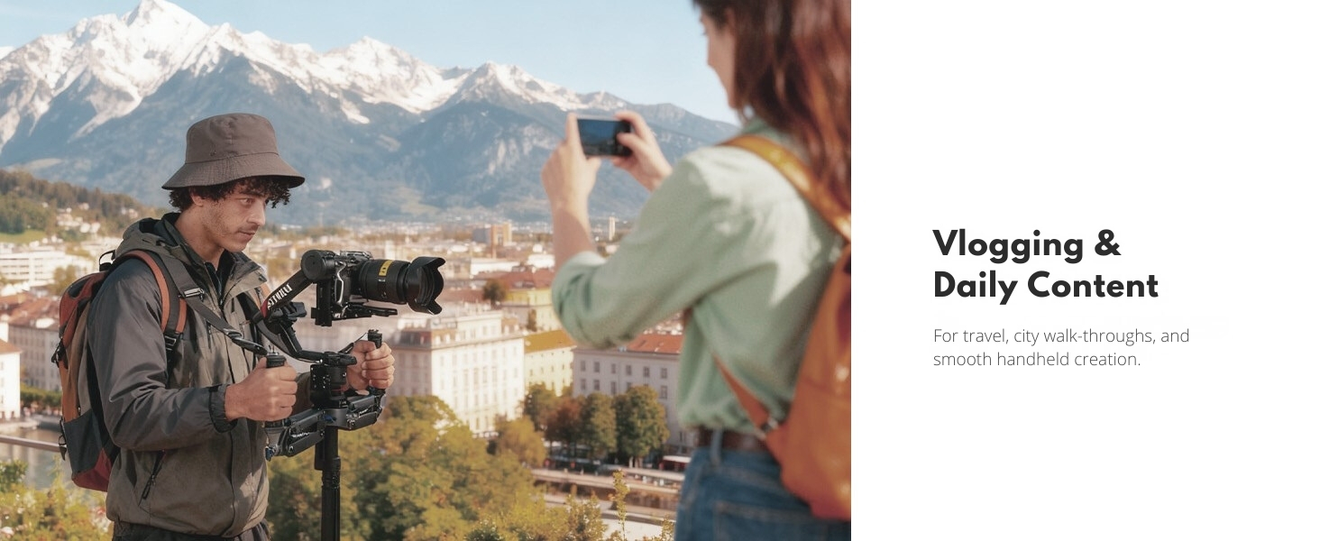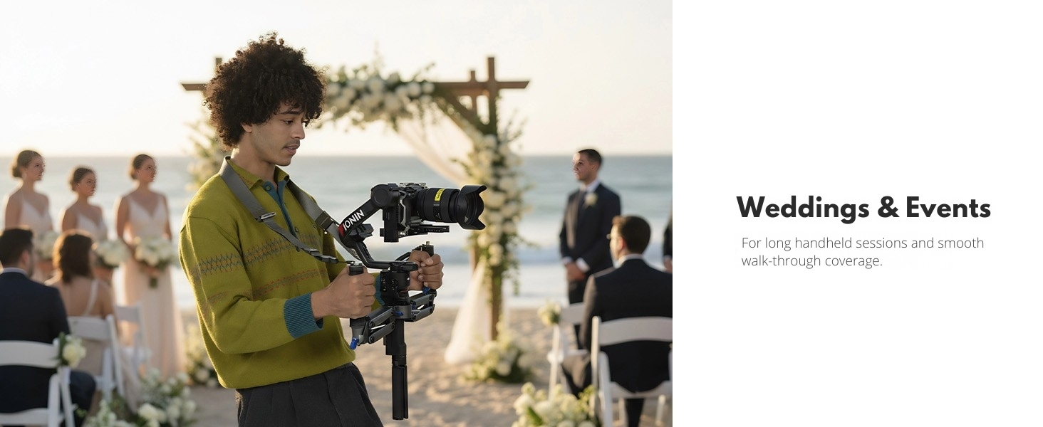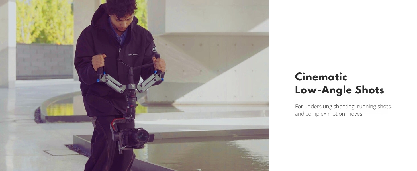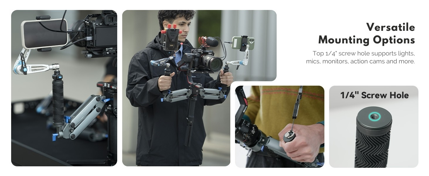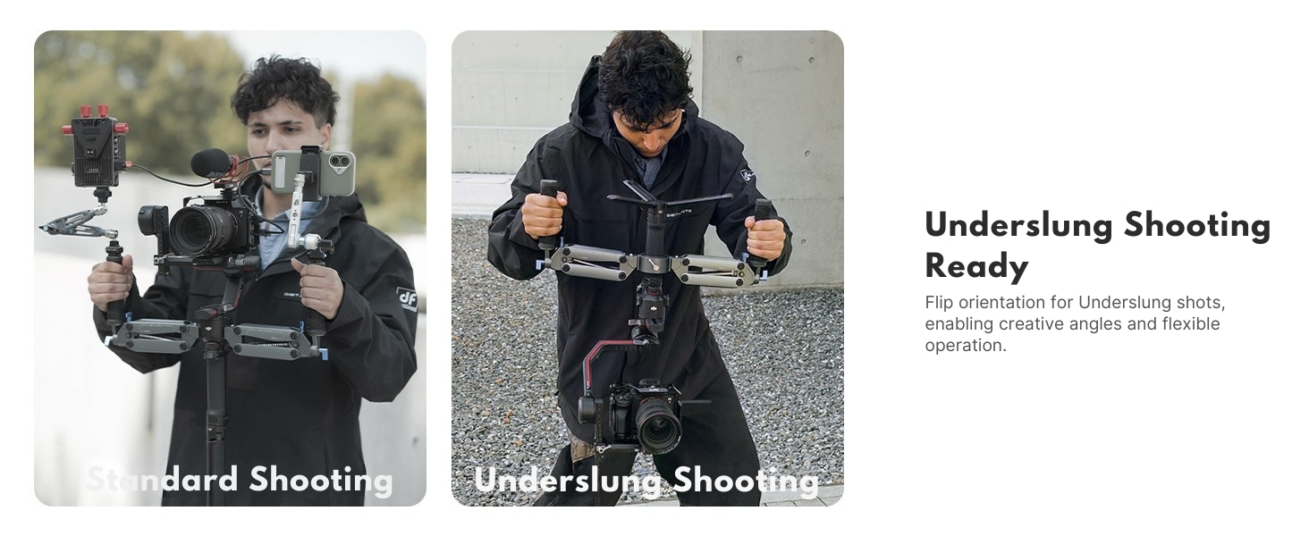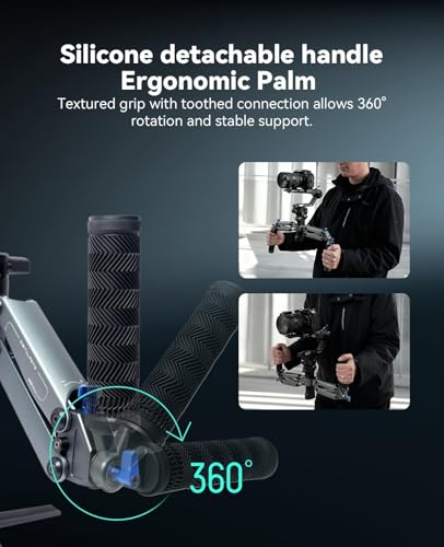 【Professional Dual-Handle Design】 Dual-hand configuration distributes weight evenly, reduces fatigue, and provides superior control and precision for smooth, dynamic shots in any filming scenario.