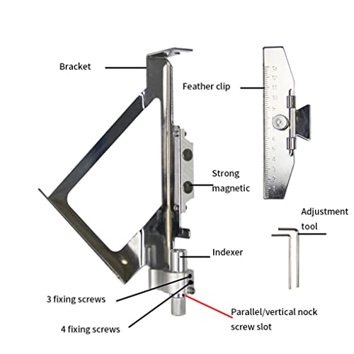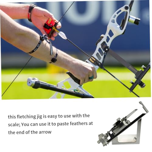 Features Fletching jig -Color: Silver. -Material: aluminum -Size: 25x20x12 cm/9.84×7.87×4.72 inch. Save time and money by repairing your arrows yourself. With scale, easy to stick to place you need.