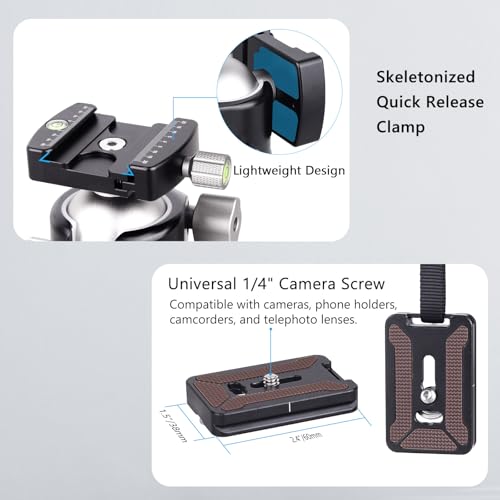 - 【Extra Accessories for Multi-Device Convenience】Includes 2 additional Arca-Swiss quick release plates and 3pcs 1/4"-3/8" adapter screws, so you can switch between multiple cameras and devices without repeated disassembly.