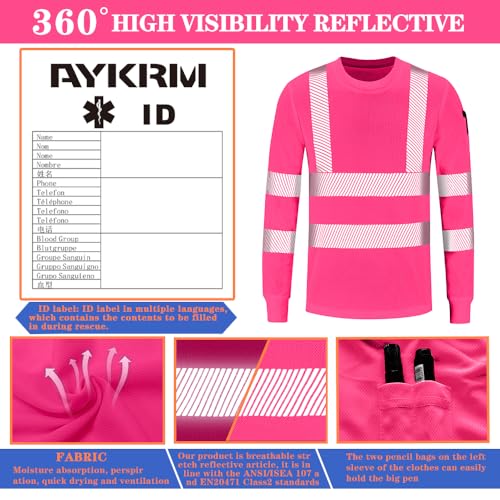 AYKRM 5 Color hi vis t Shirts High Viz Visibility Short Sleeve Safety Work Reflective Polo T Shirt(XS-8XL)