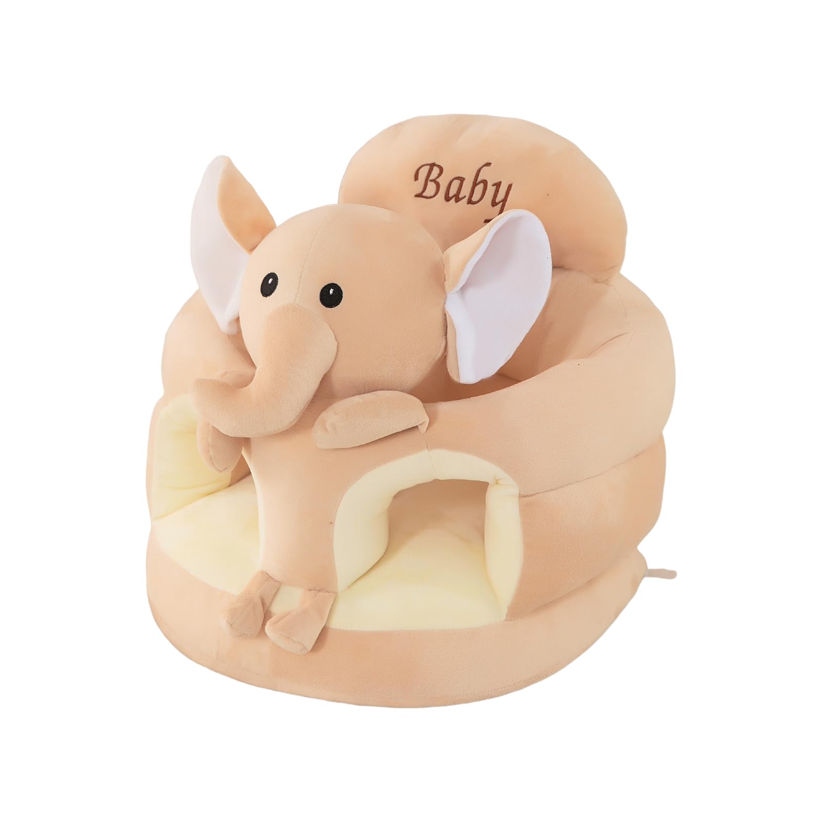 Baby Sofa Seat with Cute Cartoon Design, Sit Me Up Floor Seat with Elastic Band, Cartoon Back Head Support Sitting Infant Sofa, Toddler Plush Animal Shaped Learning Sitting Up Chair (Brown Elephant)