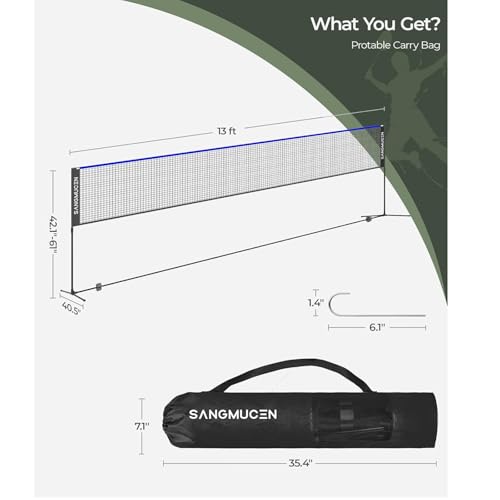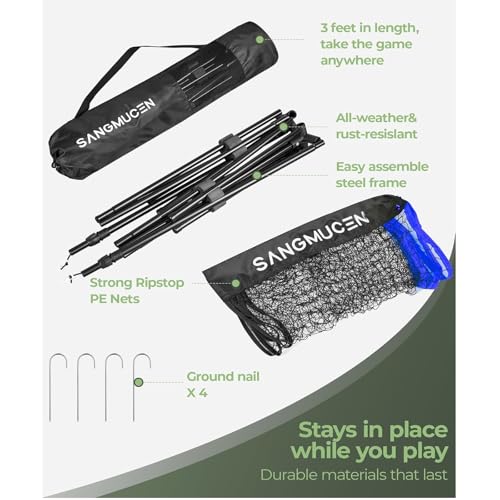- [Easy to Assemble]: SANGMUCEN portable badminton net is connected with a superior bungee rope. You can finish the installation in a few minutes. Even the kids can easily assemble the badminton set with net.