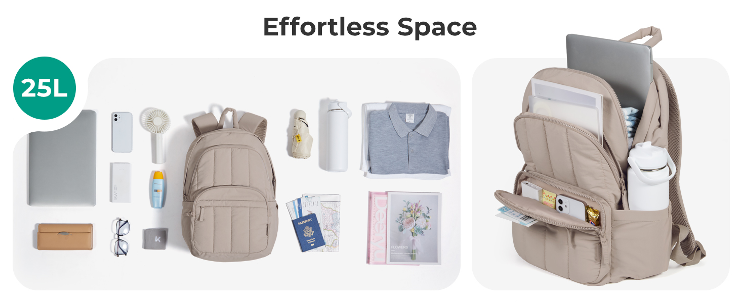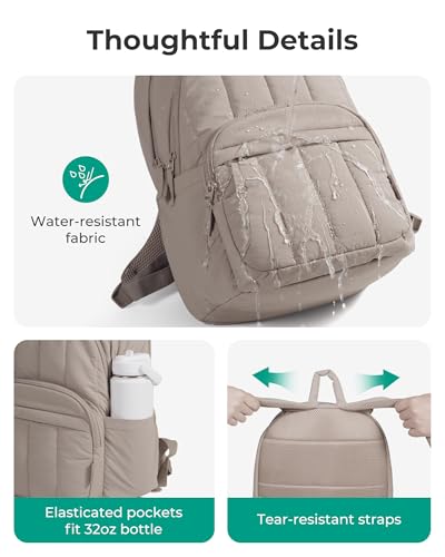 BAGSMAT Womens Backpack Travel Laptop Backpack for Women, Quilted College Laptop Bookbag, Work Back Pack for Women, Cute Computer Water-Resistant Casual Daypack, Puffe
