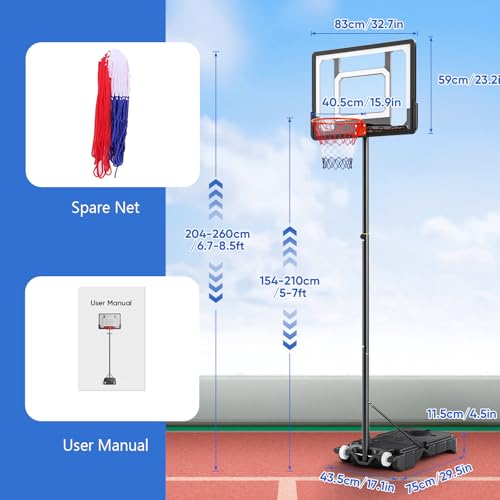 Portable with Wheels: Move your basketball hoop outdoor effortlessly with two front wheels, enabling smooth relocation across driveways, gardens, or indoors. The functional design supports a product weight of 10.6kg and a compact package size of 60.5×16.5×86.5cm for easy handling. By utilising this portability, it eliminates heavy lifting and allows quick setup for spontaneous games, solving storage hassles with a space-saving approach.