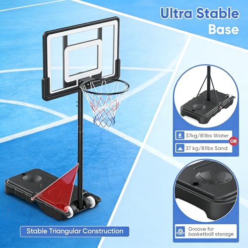Stable and Safe Construction: This kids basketball hoop and stand prioritises safety with a weighted base fillable with up to 37kg of water or sand, plus a triangular design using three steel poles for robust stability. The functional parameters include an upgraded impact-resistant PET backboard and 45mm pole diameter, preventing tipping during energetic play. By incorporating these features, it solves parental safety concerns, offering a shatterproof environment that encourages confident use.