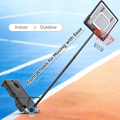 Indoor & Outdoor Versatility: Enjoy year-round play with this versatile basketball hoop, built for both indoor and outdoor use using durable steel, PET, and plastic materials in a sleek black colour. The functional adaptability, combined with parameters like the portable wheels and stable base, ensures weather-resistant performance across various settings.