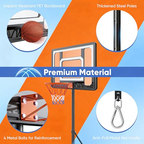Height Adjustable Design: Perfect for growing children, this basketball hoop for kids offers a flexible height adjustment from 5ft to 7ft with 15cm hole spacing, using a sturdy 45mm steel pole for easy, tool-free changes. The functional range accommodates various ages and skill levels, allowing your child to progress seamlessly. By leveraging these precise parameters, it solves the pain point of frequent replacements, promoting long-term outdoor activity and family fun.
