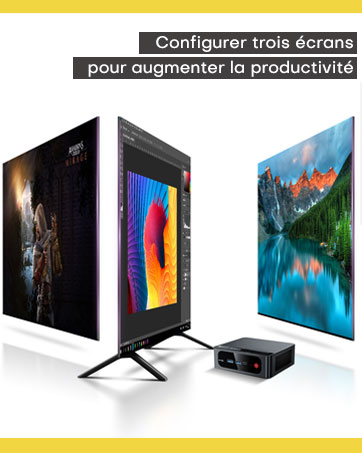 Display: This mini PC supports three displays via HDMI, DP and USB-C. It allows you to work with multiple applications or monitor data at the same time, reducing the hassle of page switching and increasing productivity.