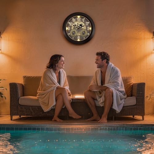 - 【Illuminated Thermometer & Hygrometer with Adjustable】The Pytha Sight outdoor clock large features a built-in thermometer and hygrometer that automatically light up in low-light conditions for easy viewing. This clock with outdoor temperature measures temperatures from -40°F to 140°F (-30°C to 50°C) and humidity levels from 1% to 99% relative humidity, providing real-time indoor and outdoor readings. For accurate results, allow the thermometer and hygrometer up to 3 hours to fully calibrate after installation or relocation.
