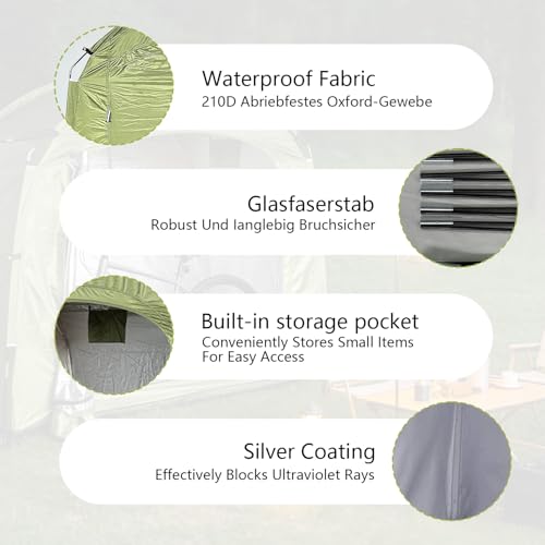 【Humanized Design】The full-length zipper on the door provides a secure closure and comprehensive protection. Strong and durable materials and construction effectively prevent damage from weather, dust, dirt, and sun. An interior window provides convenient ventilation, and a small pocket inside the tent can be used for tool storage.