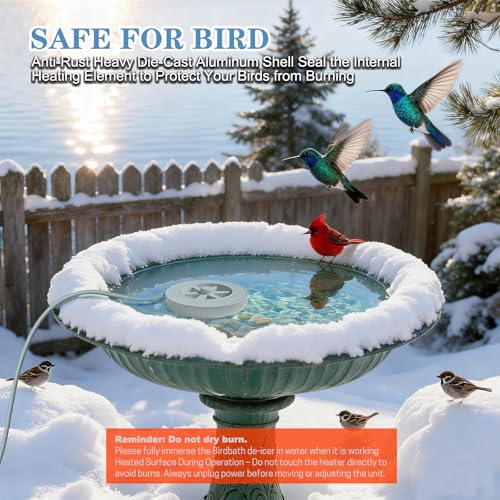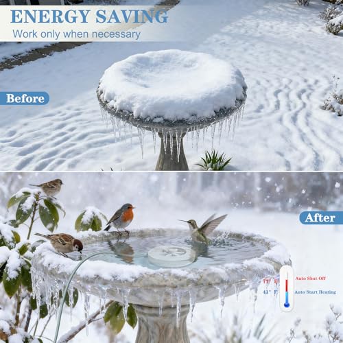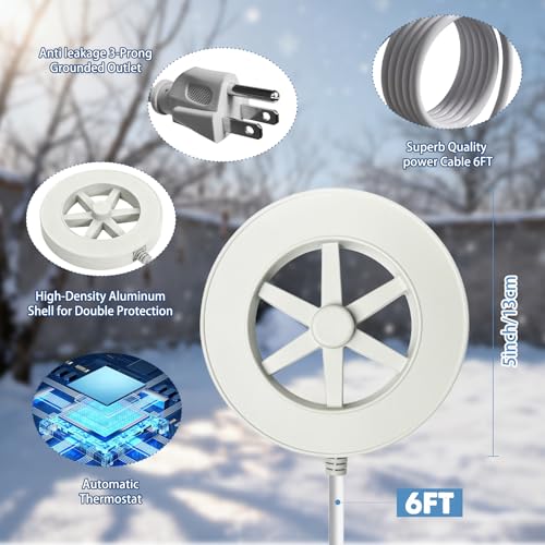 Plug-&-Play Safety:Energy-saving 50W heating with 6ft UL-tested cord (3*18AWG).Submersible & waterproof,Upgrade Your Winter Wildlife Care with Snowflake Heater Technology