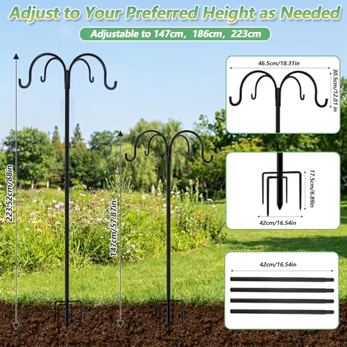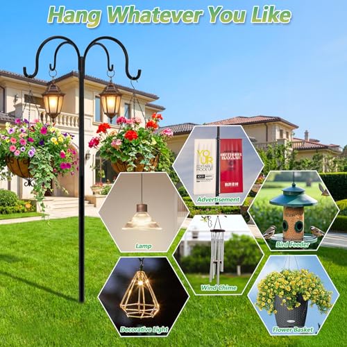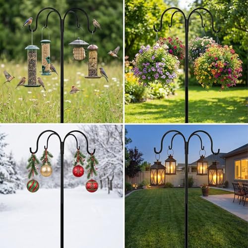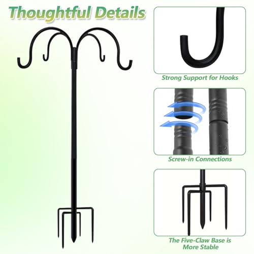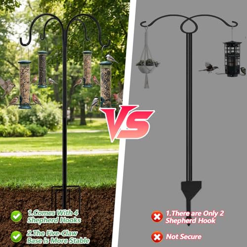 - Multi-Hook Design: The bird feeder stand features 4 hooks, while the extra tall bird feeder poles and hangers can support and display hanging baskets, bird feeders, solar lanterns or wind chimes.